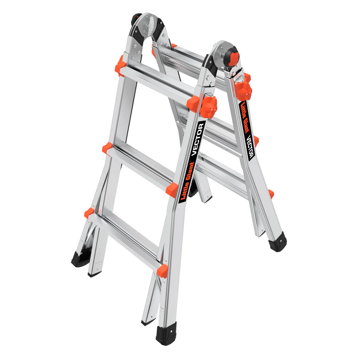Vector, Model 14 - ANSI Type 1A - 300 lb Rated, Aluminum Articulated Extendable Ladder with RAPID LOCKS and Orange Rung Caps